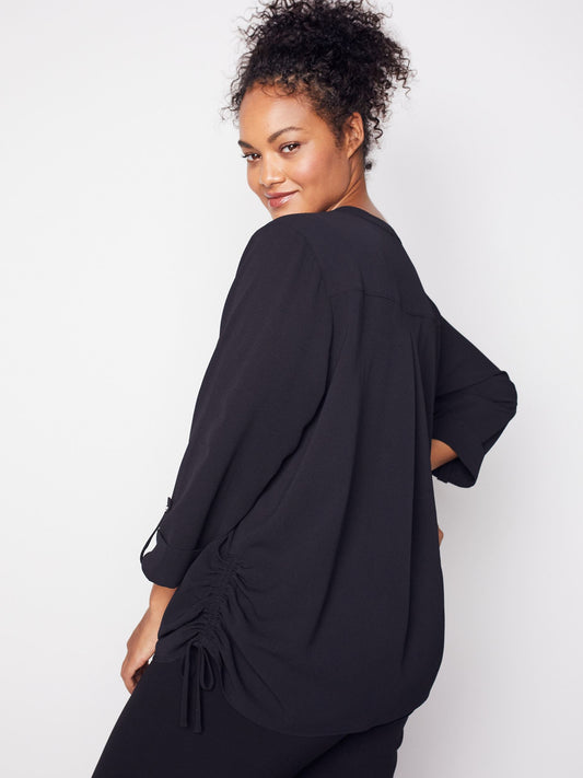 3/4 Sleeve Side Tie Popover Blouse - Plus
